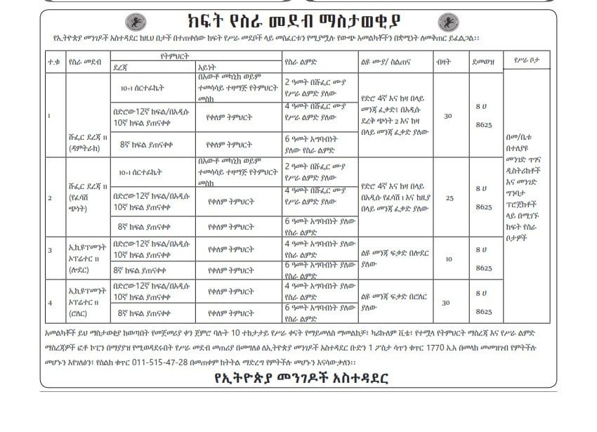 Please zoom the below image to see current jobs from Ethiopia Roads Administration.