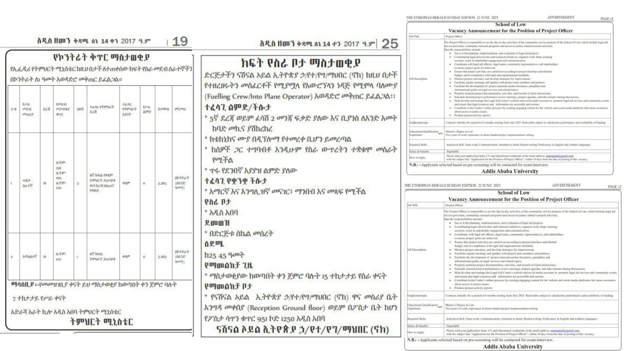 Revenue Authority Job Vacancy 2025 The Addis Abeba Revenue Authority Office is seeking competent individuals for the following job openings. Since 2003 to 2010, the Addis Abeba City Revenue Bureau has been in charge of managing the Revenue and Customs Authority’s powers. It has been working since December 2010 to revert the government to City … Read more