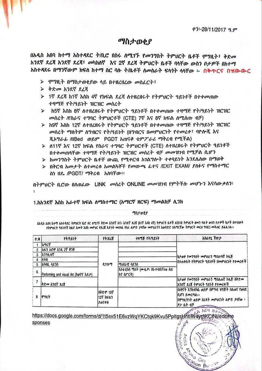 For any inquiries, please contact the Addis Ababa City Administration Education Bureau.