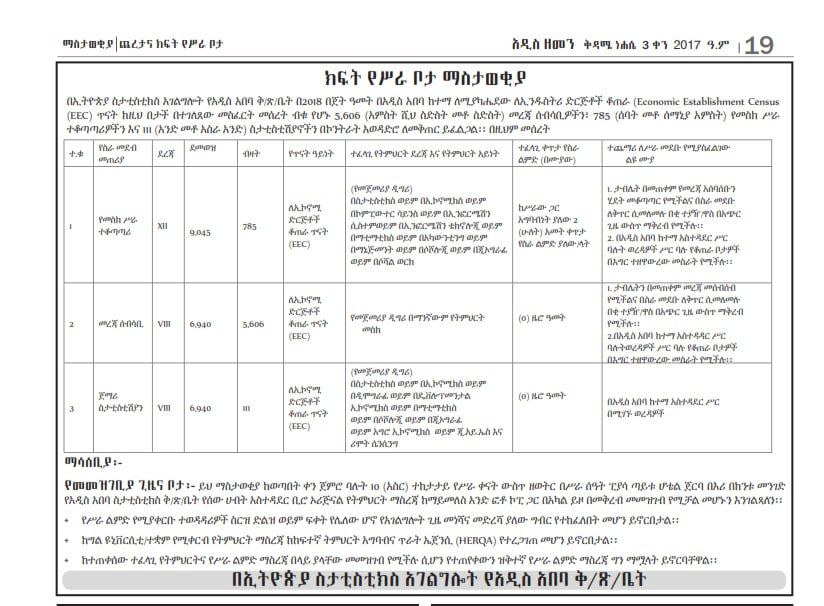 The Ethiopian Statistical Service (ESS) is pleased to announce a large-scale recruitment opportunity for the 2025 Economic Establishment Census (EEC) survey. ESS is hiring thousands of qualified professionals on a contract basis to support this critical national project in Addis Ababa.