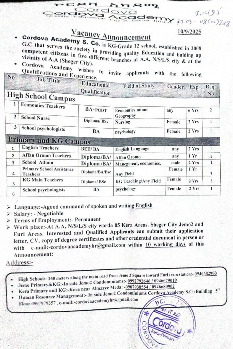 - Education: BA Degree (0 years experience) or College Diploma + TVET Level IV (0 years experience)