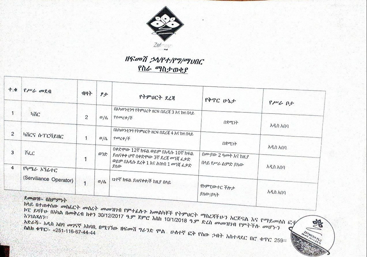 Address: Addis Ababa, Zefmesh Grand Mall, Second Floor, Human Resources Administration